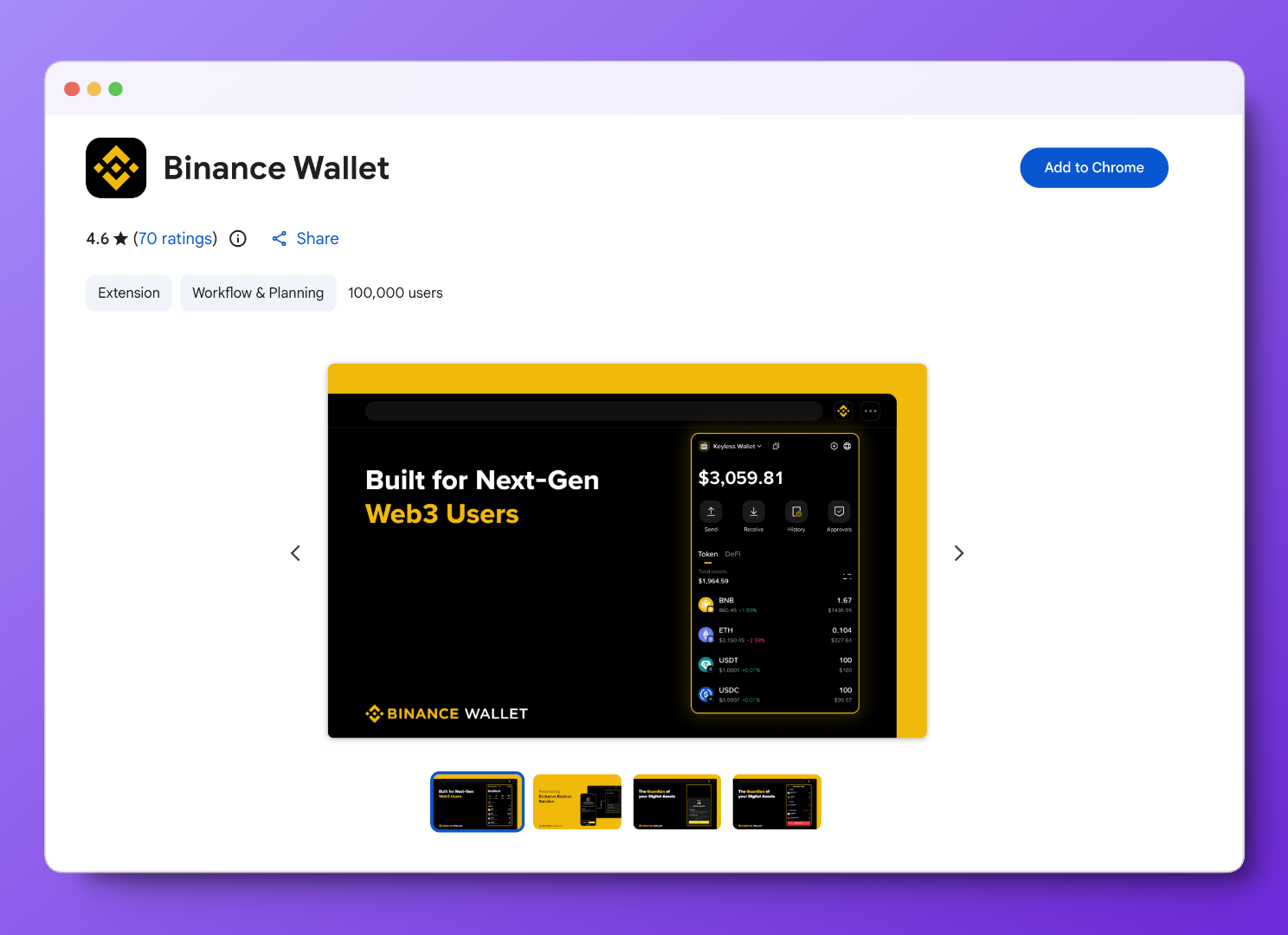 If this is your first time, make sure you have the Binance Wallet browser extension installed in your preferred browser and that your wallet is already set up.